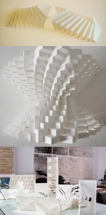 Sviluppa una ricerca continua e una formazione propria, trovando nell’incrocio tra le tecniche tessili, la rilegatura e la tridimensionalità della carta la sua specifica modalità di espressione artistica.