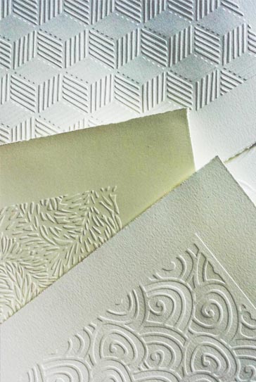 Affascinata dal segno grafico di tutti gli strumenti di scrittura con cui continua a sperimentare, è anche fortemente attratta dall’intaglio e dalla goffratura della carta e dalle molteplici possibilità che questa materia può offrire.