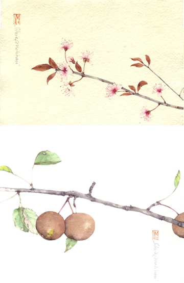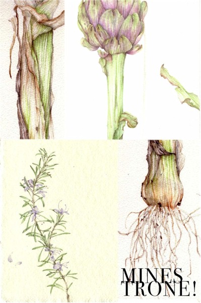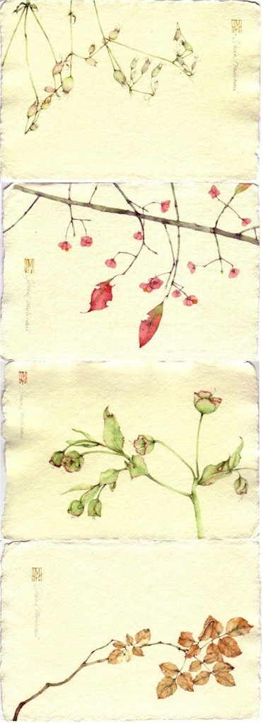 I soggetti che più frequentemente riprende, reinventandoli, sono elementi vegetali, fiori, arbusti, foglie, ma anche paesaggi e figure umane surreali, simboli, più che interpreti, di stati d'animo e ricerche.